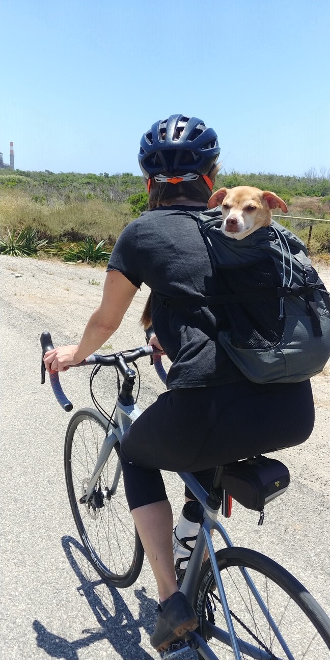 How funny. A pup that rode in a backpack while I ride my bicycle would be fun. I predict there are no bad dogs in this house. Not even &&