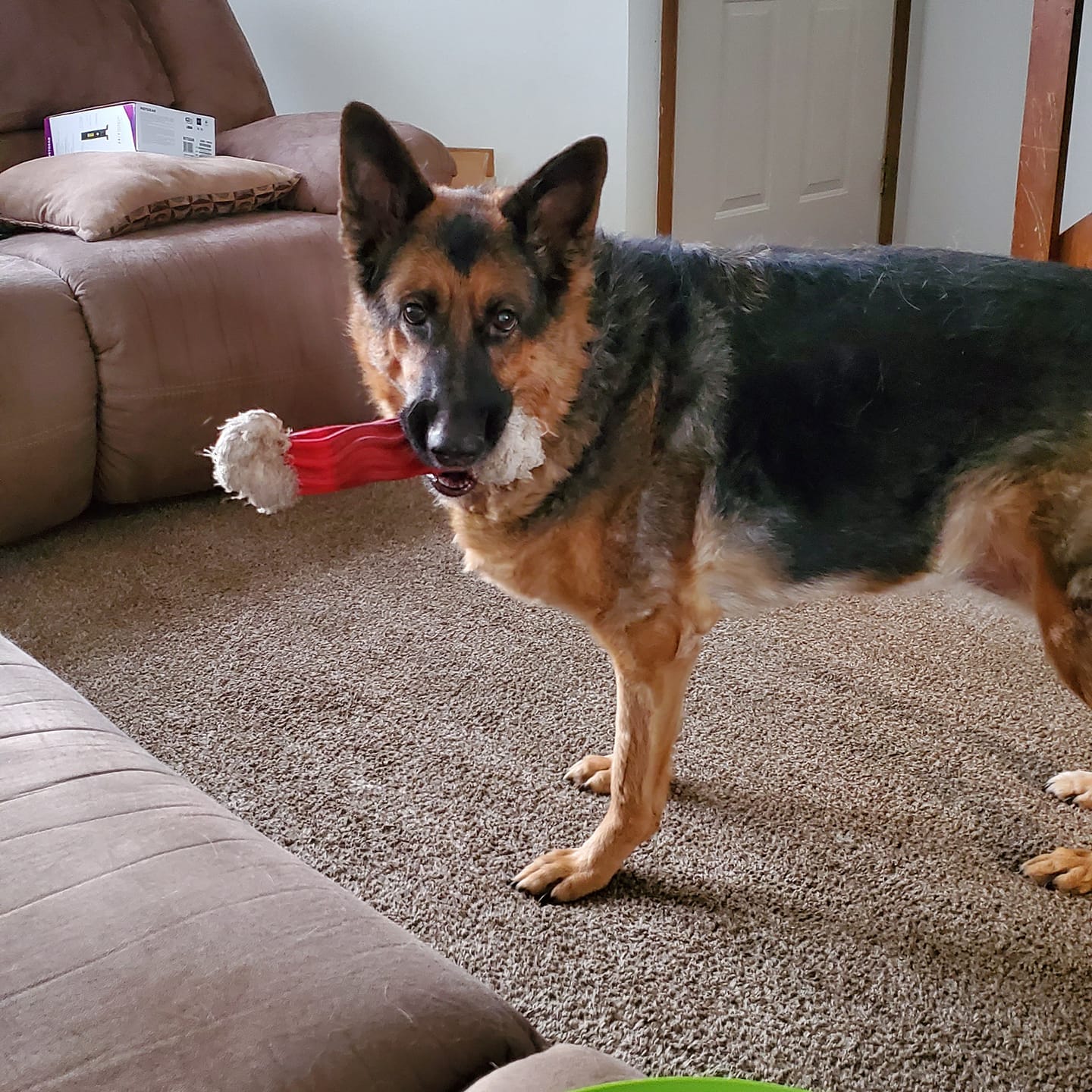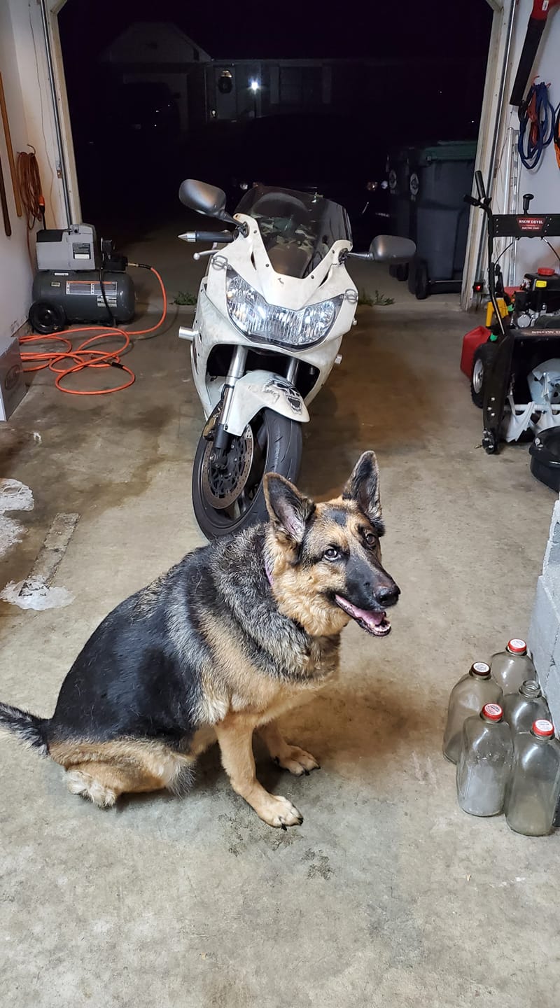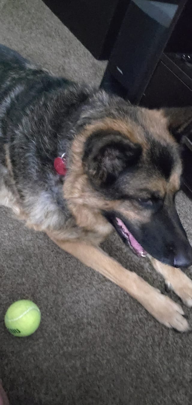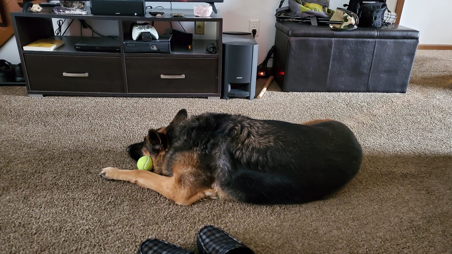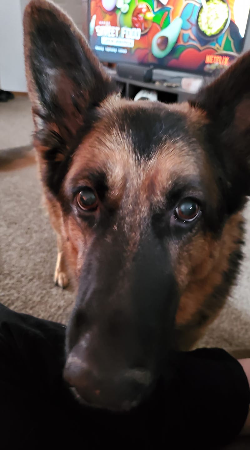 There is a ritual when I get home form work. She goes outside, then when she comes back in. I have to go to the couch and sit at the edge and tell her to bring it in. She gets as close as she can and puts her head on my chest.