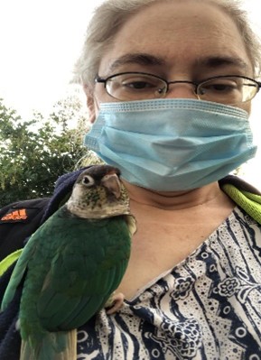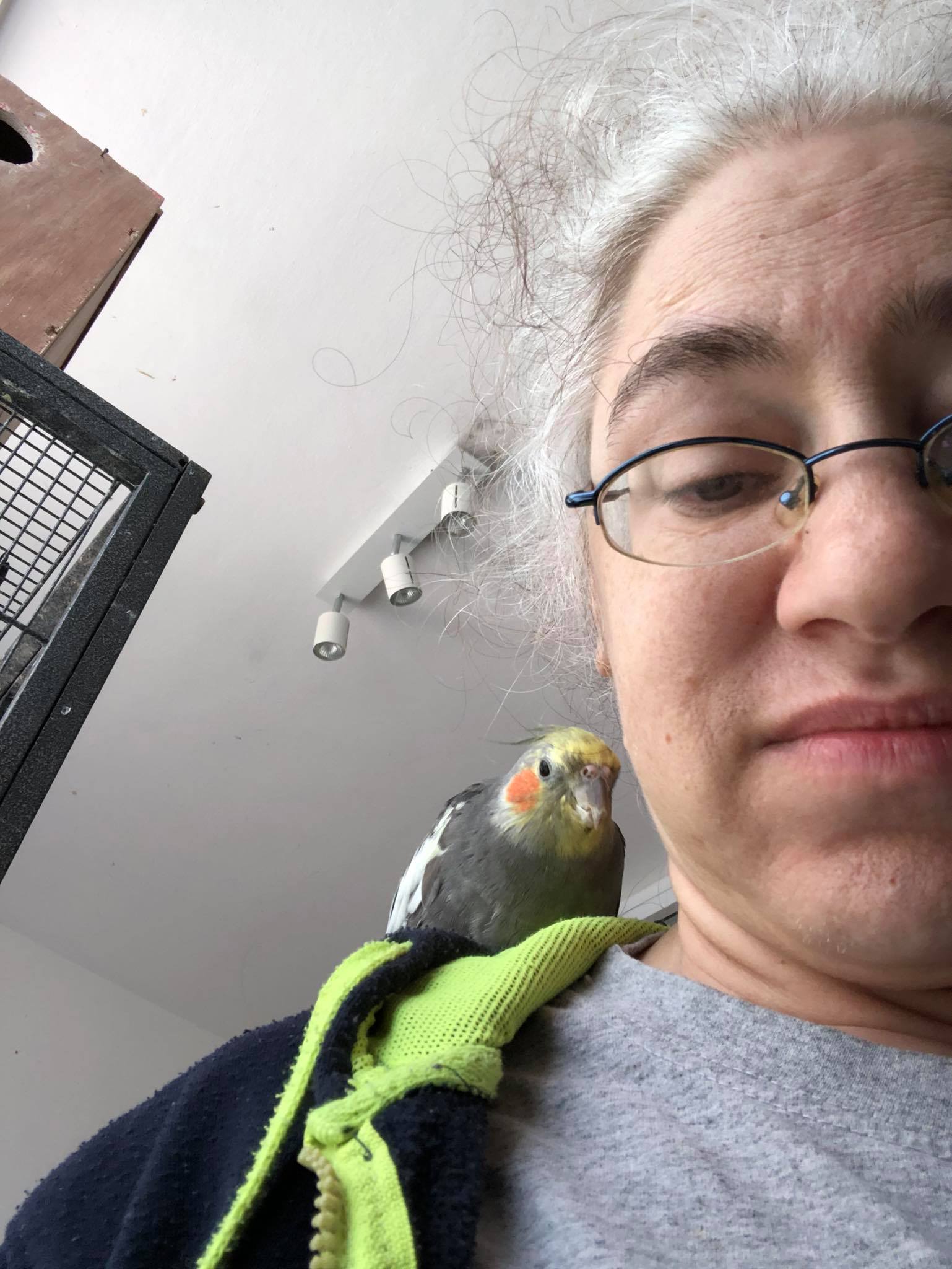 So in the morning, I do wake up, feed them. Make sure all are ok. And then I have my trusty companion, Casey, riding on my right shoulder. Sometimes he has a lot to say, sometimes not, sometimes just along (literally) for the ride, sometimes he is just having a bird-nap on my shoulder. And then, after I have walked close to 3 miles in my apartment, from side to side, with or without someone talking to me (I chat with my mom/a friend during my walk) and then I prebolus for lunch.