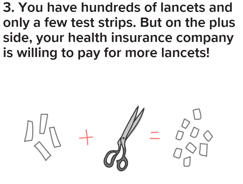 It kills me how I always end up with more lancets than test strips. I change my lancet perhaps 19 out of 20 times, yet I have three times the number of lancets as I do test strips. If I even got 1/2 the test strips as I got lancets, I would open an international supply house called test strips is us.
