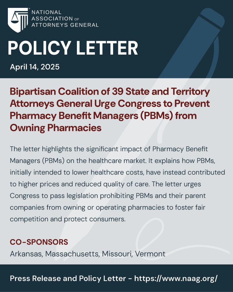 The National Association of Attorneys General, representing a bipartisan coalition of 39 state and territory attorneys general, has formally called on congressional leaders to pass legislation that would prohibit pharmacy benefit managers (PBMs) from owning or operating pharmacies. PBMs, initially established to manage prescription drug benefits on behalf of health plans, have undergone significant evolution due to widespread horizontal consolidation and vertical integration.