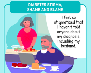 Diabetes stigma refers to blame, judgements, and stereotyping of people with diabetes due to their condition, which may or may not be internalised as self-stigma (shame).