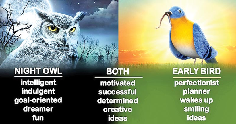 The psychology of ‘chronotypes’, as it’s known, largely backs up the popular image of early-rising, happy go-getters; though, as ever, the reality is a little more nuanced. The majority – around 60% – of us are not larks or owls, we’re an intermediate mix of the two. Another factor to consider is that chronotype isn’t just about the time you go to bed and get up in the morning, it’s also about your optimal time of functioning – larks tend to be at their best earlier in the day, while owls tend to function better later on, which could have obvious advantages for certain career paths involving evening work or night shifts.