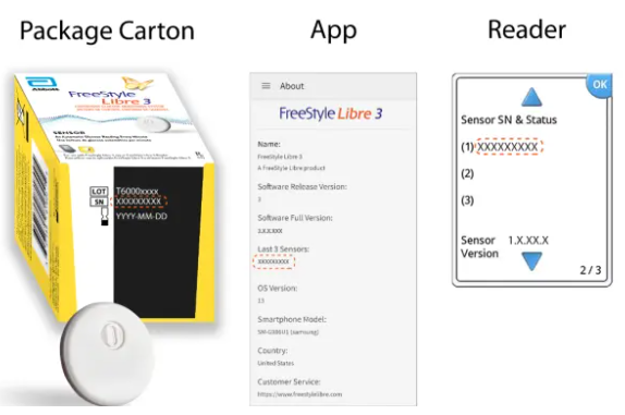 The Libre 3 system includes an app, reader, and sensor. The reader and app are not affected, only the sensors. The company is urging people to immediately discontinue using sensors from any of these three lots: