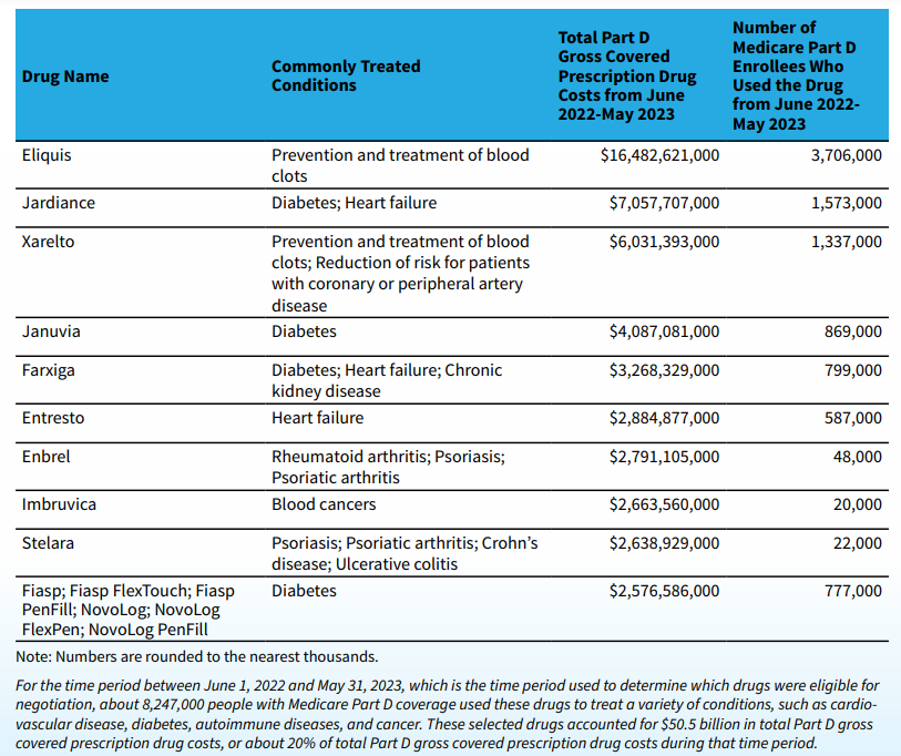 Medicare names first 10 drugs for price negotiations by Ned Pagliarulo for BioPharmaDive.com, 29 August 2023.
