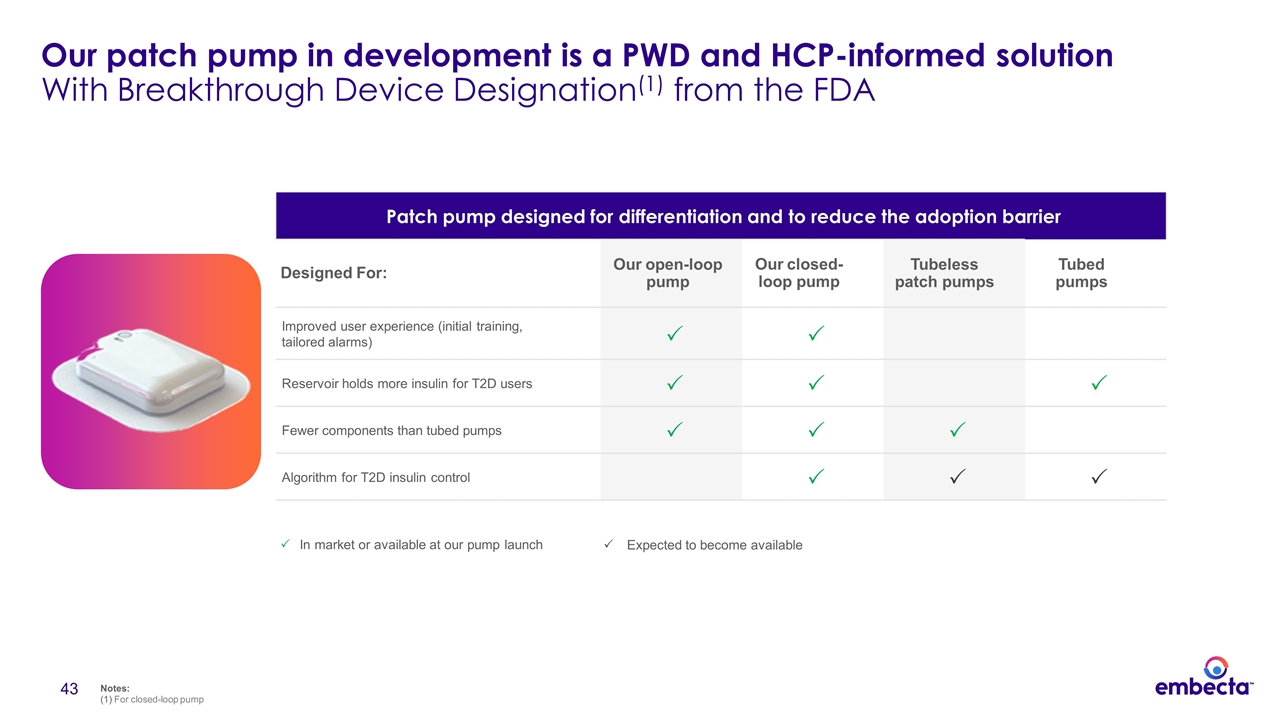 Looking ahead, Embecta is developing a closed-loop version of its tubeless patch pump, which would automatically respond to readings from a continuous glucose monitor. For the insulin-dosing algorithm, the company has been collaborating with diabetes software developer Tidepool
